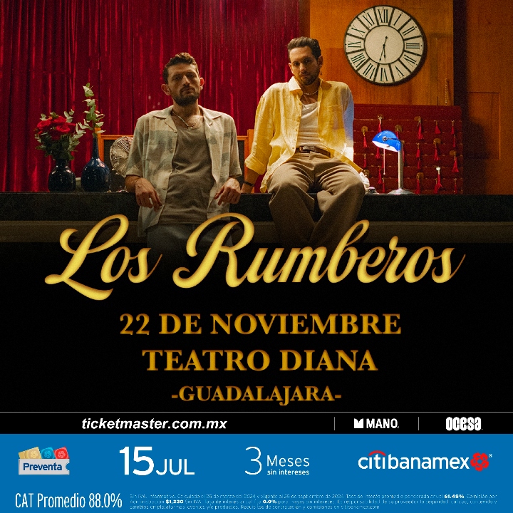 El sonido tropical de Los Rumberos está de vuelta, y es momento que la Perla Tapatía disfrute de un concierto imperdible. Aparta la fecha del próximo 22 de noviembre, porque llegarán con todo el ritmo al Teatro Diana.