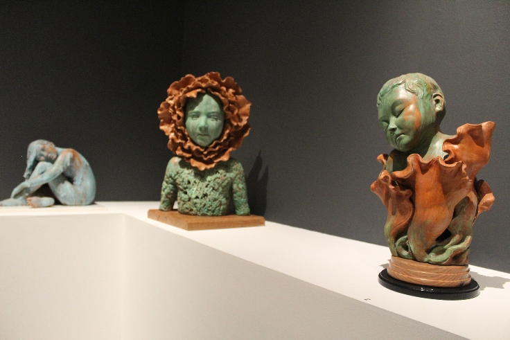Karla Aguayo quien presenta una serie de doce piezas elaboradas en barro de Guanajuato, policromado en frío dijo: «Tengo siete años trabajando en la cerámica, desde que comencé con la escultura y ahora se volvió en el medio de expresión que más uso, es un material muy boble, económico y que da muchas posibilidades creativas. He realizado también joyería y estoy incursionando en el grabado y dibujo carboncillo. Todas son piezas recientes. Quiero prepararme para otra exposición y me gustaría hacer piezas de gran formato, me interesa la escultura urbana».