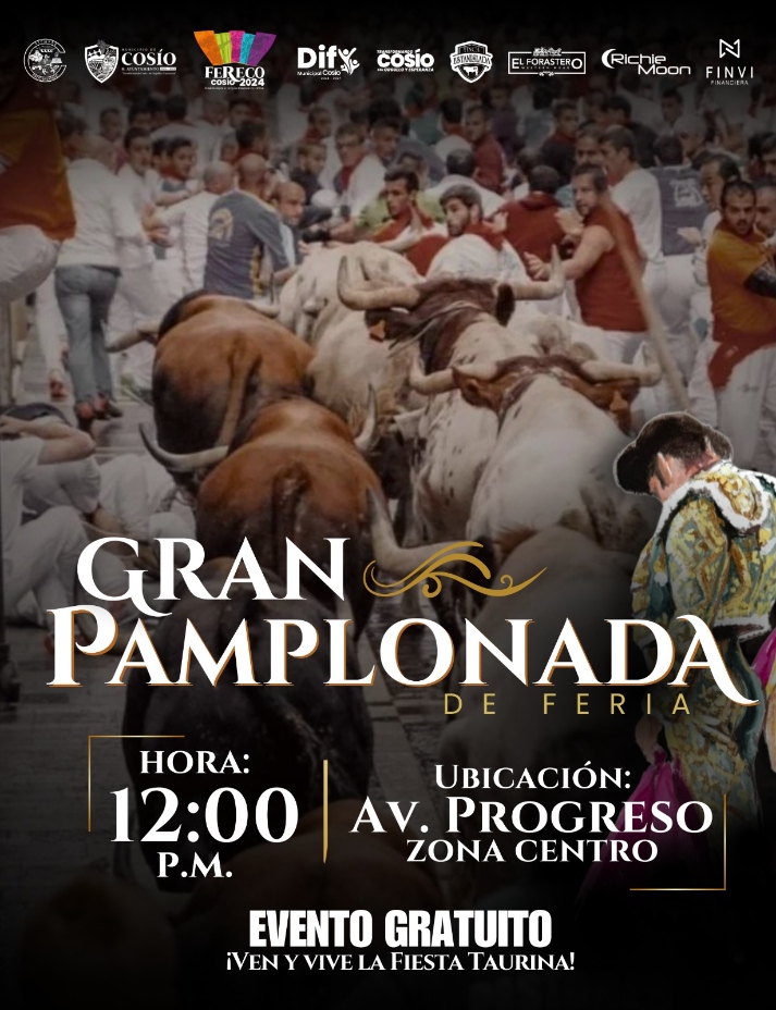 La feria también contará con encuentros deportivos, como exhibiciones de beisbol, torneos de futbol y voleibol, además de la tradicional pamplonada. Estas actividades están diseñadas para involucrar a toda la comunidad y fomentar la convivencia y la sana diversión. Adicionalmente, los visitantes podrán disfrutar de la Exposición Ganadera y una amplia variedad de antojitos mexicanos, representativos de la rica gastronomía de Cosío. La tradicional pamplonada se realiza el Miércoles 25 de diciembre, la cita es en avenida Progreso Zona Centro.