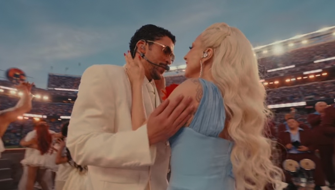 Imagen de Bad Bunny y Lady Gaga durante el espectáculo del Super Bowl. Foto: ESPECIAL.