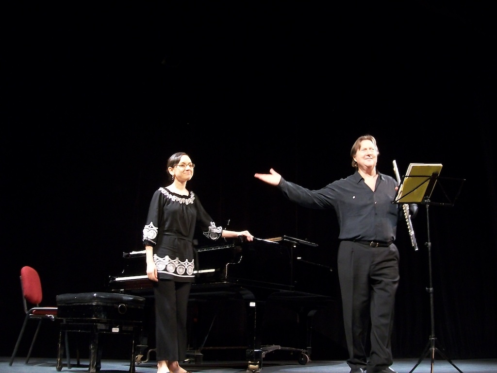 Karla Flores y Robert Stallman al final de su intervención durante el concierto de Clausura del Curso Especial para Flautistas