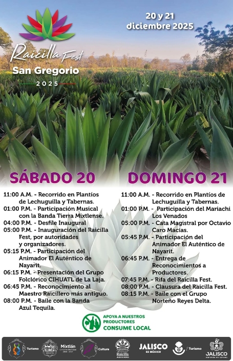Mixtlán invita a disfrutar de la edición 5 del Raicilla Fest San Gregorio 2025 que se realiza el 20 y 21 de diciembre.