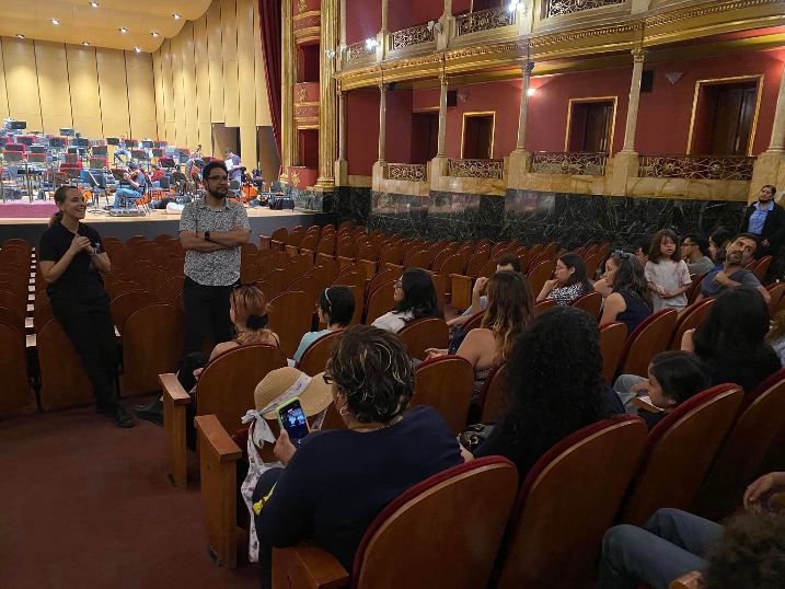 Elinor Rufeizen y Rodrigo Garibay durante las charlas a estudiantes que asistieron al ensayo del 6 de junio. Foto: CORTESÍA