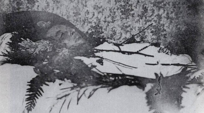 The image was taken by Maurice Gilbert on November 30, 1900, just three hours after the author’s death in a Paris hotel.