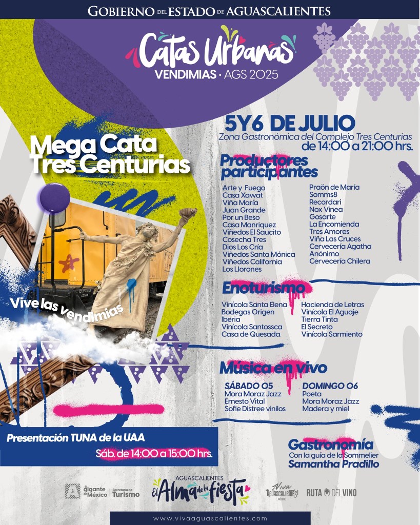 Este 28 y 29 de junio el Barrio de Guadalalupe es sede de las Catas Urbanas que el Gobierno de Aguascalientes ha realizado durante todo el mes de junio como preludio a las las Vendimias 2025 de la Ruta del Vino de Aguascalientes, que este año se realizan del  19 de julio al 6 de septiembre.
