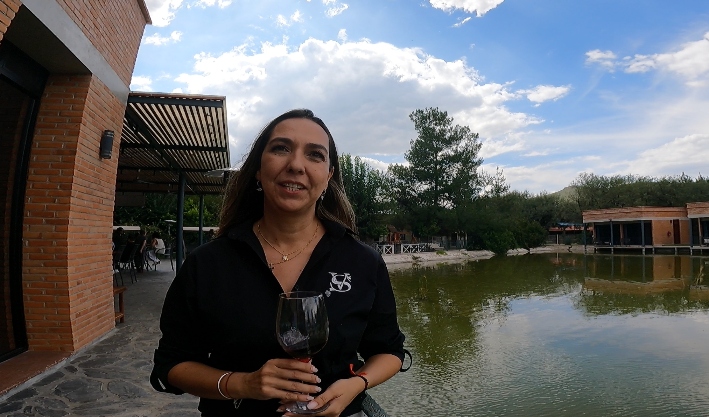 Alejandrina González, directora de dicha vinícola dijo sentirse muy satisfecha de toda la promoción la Ruta del Vino que ha realizado el Gobierno de Aguascalientes, compartió : «Somos una vinícola joven, tres años como complejo enoturística y cuatro años haciendo vino. Hacemos , rosado, blanco y tinto seco, algunos están por entrar a Chedraui selecto, y otros ya se pueden encontrar en restaurantes de Aguascalientes, San Luis Potosí, Veracruz, Mazatlán, CDMX y Guadalajara. Los vinos que más nos solicita el público es El Susurro que es un ensamble de cuatro uvas, un Syrah de crianza con seis meses de barrica y el Alessandrina Sangiovese. Hicimos nuestra fiesta de vendimia el 10 de agosto, tuvimos un recorrido y pisa de uvas y por primera ocasión una cata maridaje imersiva con cuatro de nuestros vinos premiados. La cata la realizamos en nuestra cava y en los muros proyectamos imágenes relacionadas con los platillos y los vinos, la música también era alusiva a lo que la gente degustaba y obsequiamos regalos que de manera táctil te conectaban también con el vino y el maridaje con la idea de que los asistentes tuvieran una experiencia especial a través de todos los sentidos».