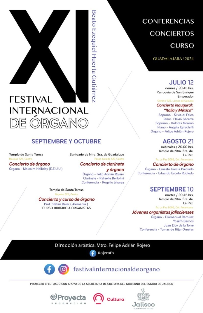 Mayor información del Festival Internacional de Órgano, beato Ezequiel Huerta Gutiérrez en la página de Facebook homónima.