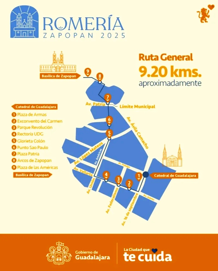 También se dio a conocer que el Sistema de Tren Eléctrico Urbano (SITEUR), indicó que las estaciones Plaza Patria y Zapopan Centro de la Línea 3 de Mi Tren, estarán cerradas el domingo 12 de octubre de 5:00 a 13:00 horas y varias rutas que cruzan con la ruta que recorrerá la imagen y sus fieles de cerca de 9.20 kilómetros modificarán sus trayectos.