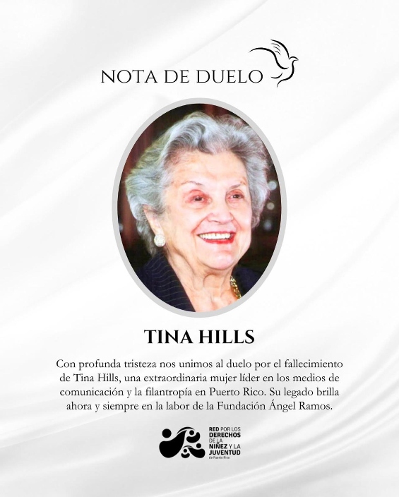 Tina Hills will also be remembered as the key figure and the person most responsible for the long-term success of the Ángel Ramos Foundation, one of Puerto Rico’s most important philanthropic institutions. In addition to being the foundation’s first president, Tina was the first woman to chair the Inter-American Press Association (1977-1978). Of Italian origin, she married Ángel Ramos in 1950.