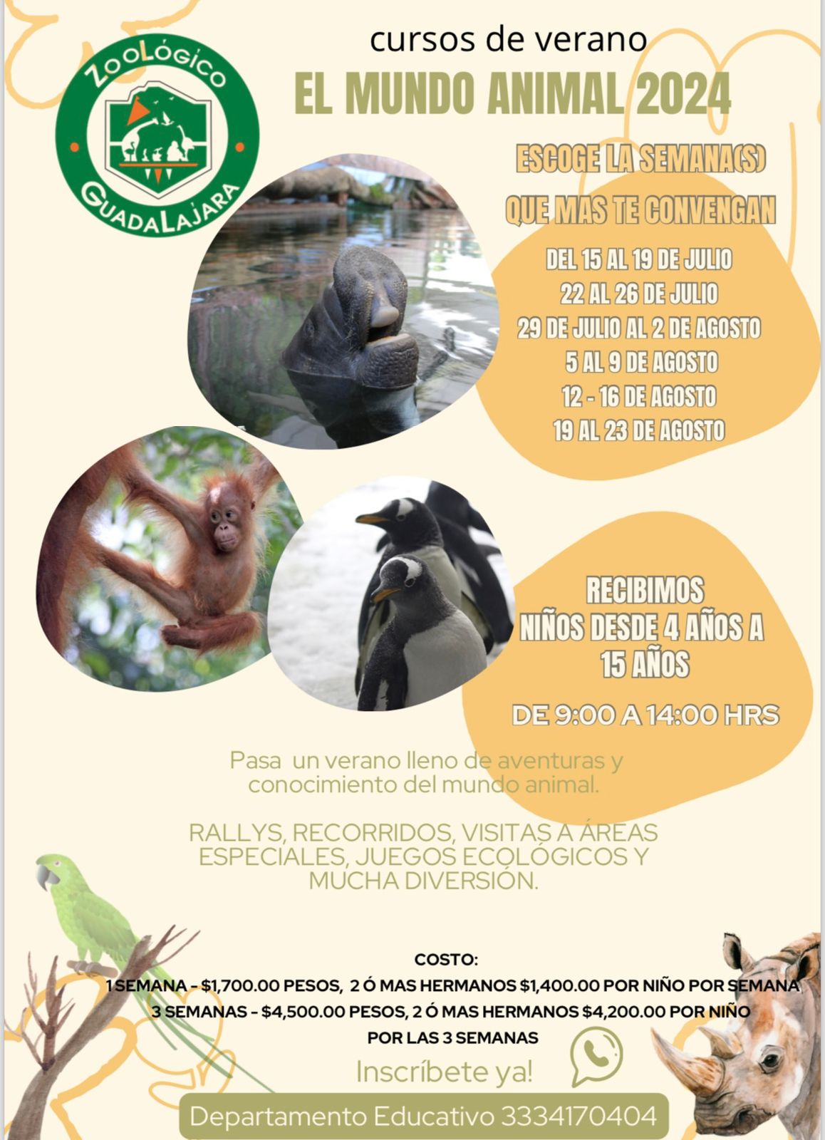 NIÑOS. EL ZOOLÓGICO GUADALAJARA INVITA AL CURSO MUNDO ANIMAL