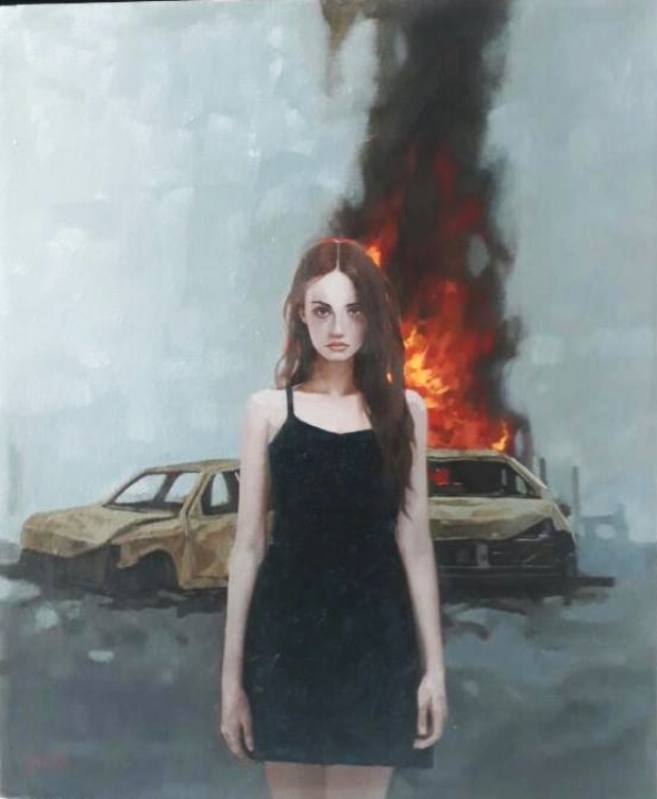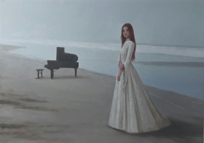 Tú eres el mar. Óleo sobre tela de Jacob Flores inspirado en el monólogo homónimo de Angelo Callipo.